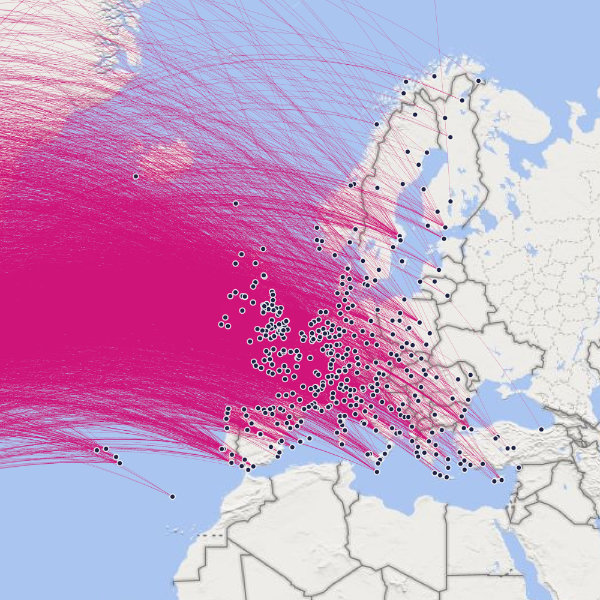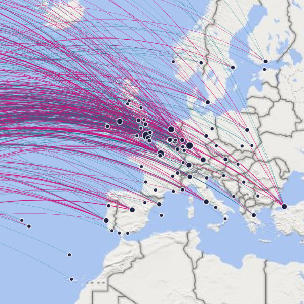 Europe < > North America